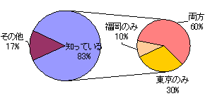 多少東京に近いせいでしょう、東京は75%と、福岡の半数が知っているを上回りました。