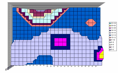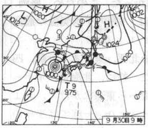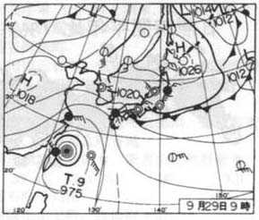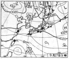 さて、この観測値を10回予測(fdt12)した結果(30時間後)を図に示す。画像自体はあまり変化の見られないまま上方に移動していが、その移動と共に画像の下端から低圧部が現れた。実際の天気図と比較すると、偶然にも台風が同じ位置に示されている。 この台風はなぜ予測できたのであろうか。原因はテスト予測で注意した四辺補間の影響が出てしまったためである。