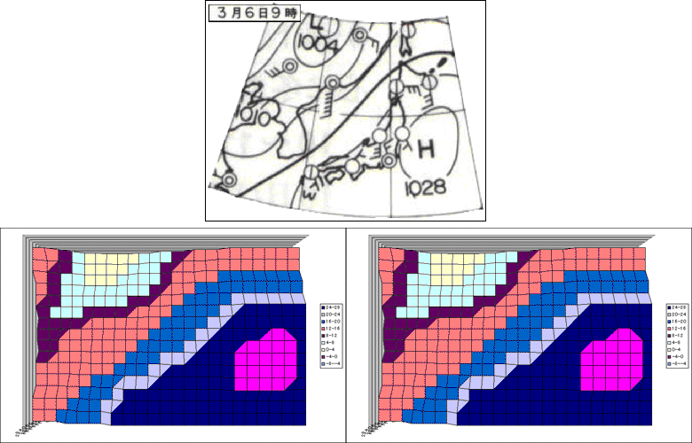 予測5は日本付近における天気図数値画像である。データの大きさは24×16個、時間幅は24時間である。