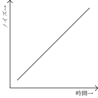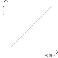 つまり、時間幅を一定とし、データの大きさを変化させると、データの大きさが大きいほどノイズが大きく現れる(ただし、時間幅を大きく取ると、どの大きさでもノイズは大きく現れる)。 |